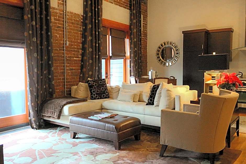 This suite features Modern-style furnishings with a full kitchen, flat-screen smart TV, and custom photographic displays by artist Gately Williams.